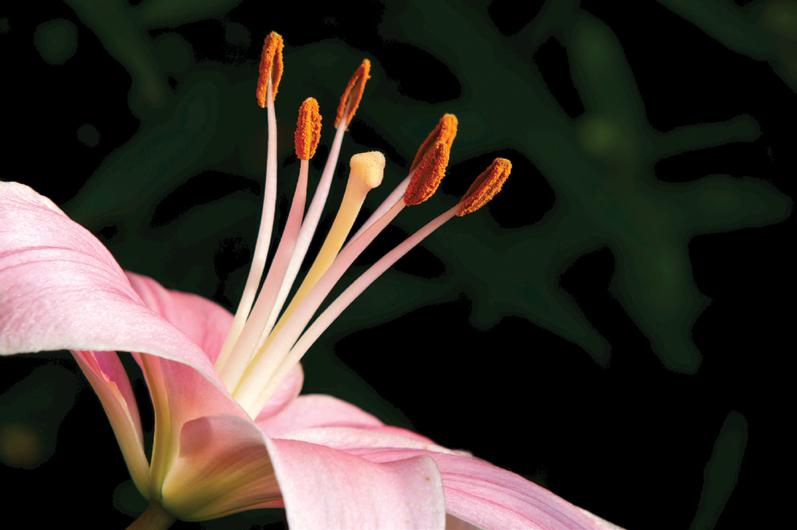 Plate 1: Reproductive structures within a flower. Stamens carrying pollen surround the central carpel, which ends in the stigma.