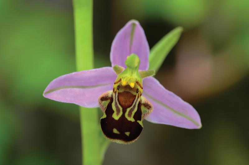 Plate 4: The extended petal of a bee orchid (Ophrys apifera) mimics the appearance of a bee, attracting male bees as pollinators.