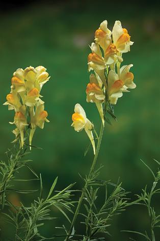 Plate 5: (left) Butter-and-eggs plant (Linaria vulgaris), and (right) close-up of its relative, the snapdragon (Antirrhinum). The petals of these flowers are fused to form a tube.