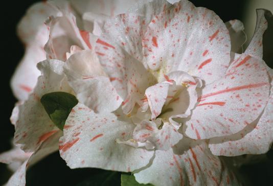 Plate 9: White azalea with pink streaks and spots. Such random coloured markings can result from jumping genes that block the production of anthocyanins in some parts of the petal but not in others.