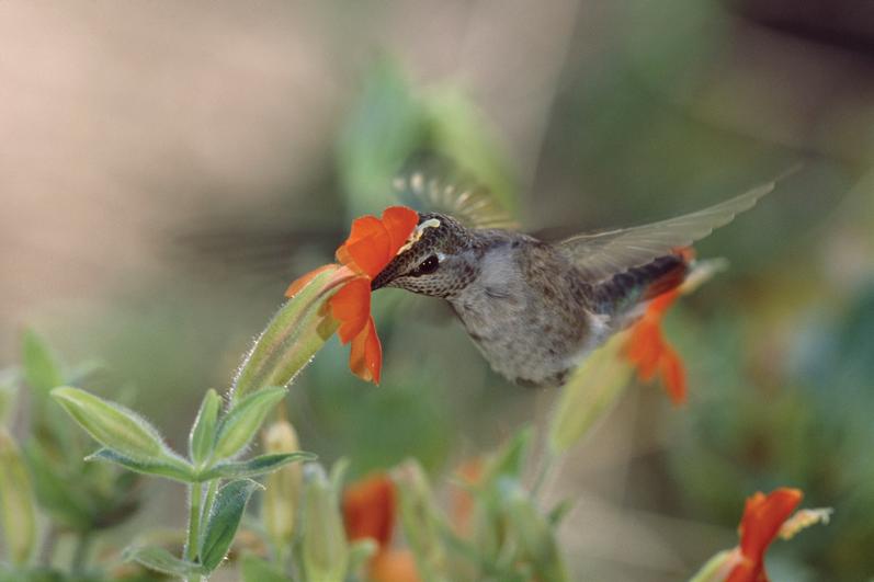Plate 3: Hummingbird with its long beak in a red monkey flower (Mimulus cardinalis).