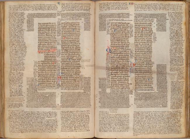1. Late thirteenth-/early fourteenth-century Italian manuscript, with central text flanked by multiple layers of peripheral paratextual commentary. Decretales Gregorii IX, Berkeley, Robbins MS 5, ff. 193v–194r. The Robbins Collection: University of California, Berkeley, School of Law, www.digtial-scriptorium.org
