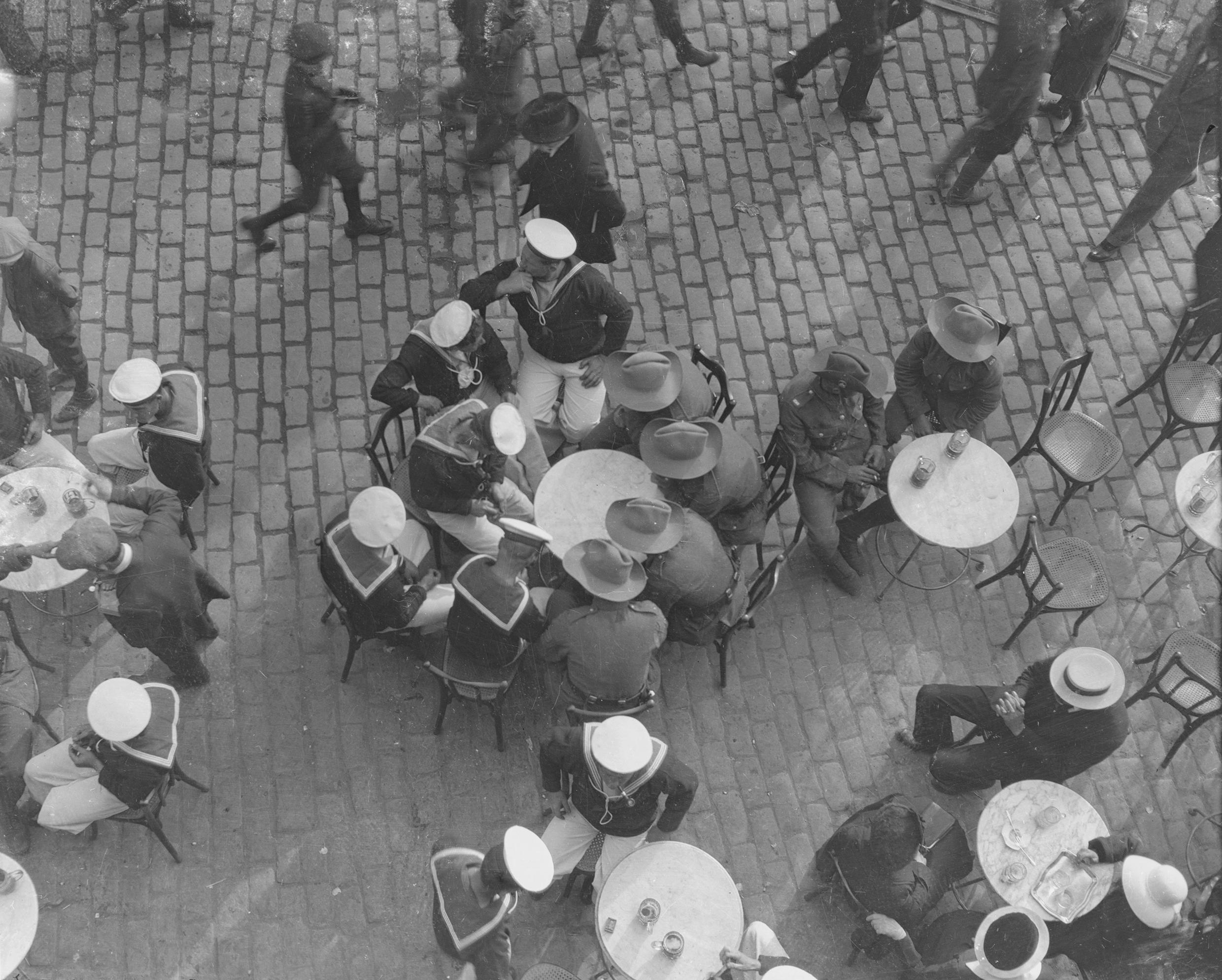 Figure I.2 Ariel Varges, ‘Naval rating from British Light Cruiser Lowestoft with men of the 7th Battalion South Wales Borderers having refreshments at a cafe in Salonika, April 1916’. © Imperial War Museum, Q 31921.