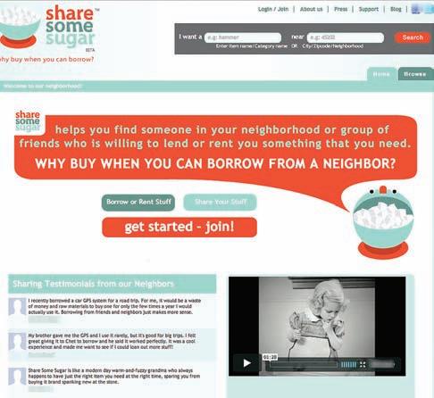 Social media platforms offer new ways to recycle. Numerous sharing sites like SnapGoods, NeighborGoods.com, and ShareSomeSugar base their business models around allowing people to share, exchange, and rent goods in a local setting In fact, some research indicates that people who par ticipate in these sites also benefit because they feel they are par t of a community One study found that when people post messages on Twitter (also par t of a community), this releases oxytocin, a neurotransmitter that evokes feelings of contentment and is thought to help induce a sense of positive social bonding The researcher obser ved that this interaction “reduces stress hormones, even through the Web. You’re feeling a real physiological relationship to that person, even if they are online.”94