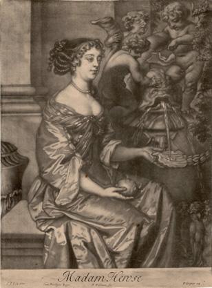 LikeNellGwyn,MargaretHugheswasoneofthe firstactresses.Knownfor herbeautyandtheatricaltalents,shebecameevenmorefamousforbeingthe mistressoftheking’scousinPrinceRupert.PortraitsofGwynandHughesby PeterLelyresembleLely’simagesofcountessesandduchesses.Inseveral picturesbymembersofLely’sstudio,imagesofGwyninprofiledressedin stylishgowns,wearingpearls,mimicLely’sportraitsofElizabethWriothesley, CountessofNorthumberland(laterDuchessofMontagu),andAnneDigby, CountessofSunderland.20 AnelaborateportraitbyLelyofMargaretHughes depictstheactressseatedinprofilenexttoanornatelycarvedfountain (Figure6).Sheholdsascallopshellinonehandtocatchthestreamingwater, andalemonintheother.Shewearsapearlnecklace,pearlearrings,andalong strandofpearlswoventhroughherhair.Thecuratorsoftheexhibit Painted Ladies note, “OncePrinceRuperthadridhimselfofhispreviousmistress, FrancesBard,heandPegHugheslivedpracticallyasmanandwife.Something oftheproprietyoftheirrelationshipisreferredtoinLely’s fineportrait,inwhich