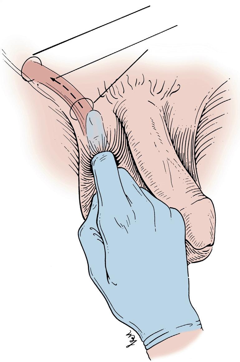 the index finger over testis and invaginating the scrotum up toward external ring (Fig. 1.2).