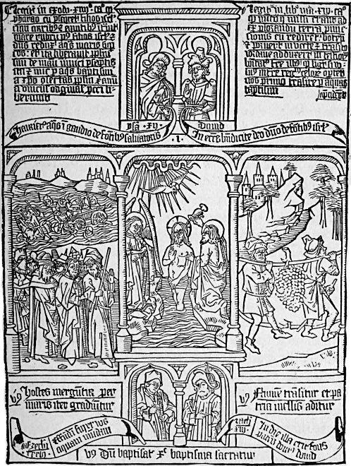 The Biblia Pauperum, or the Bible for the Poor, is one of the most interesting examples among the block books. It is composed almost entirely of crude illustrations with doses of text or short explanations