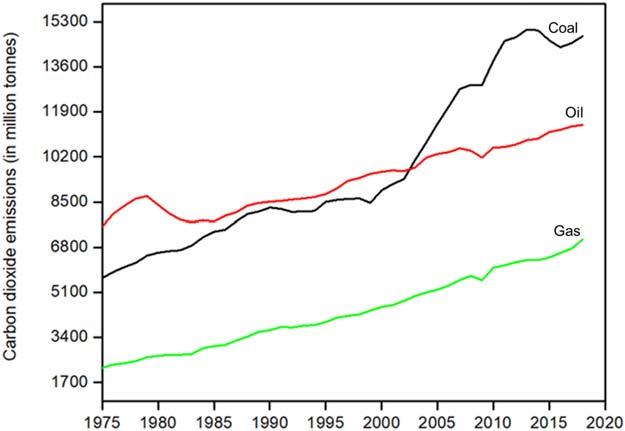 Figure1.1 CO2 emissionsfromcombustionoffossilfuels. FromIEA2020.Available from: https://www.iea.org/reports/co2-emissions-from-fuel-combustion-overview (Accessedon 23April2021).