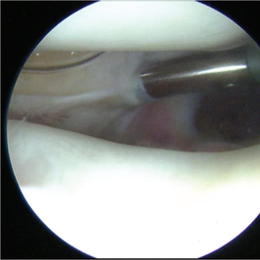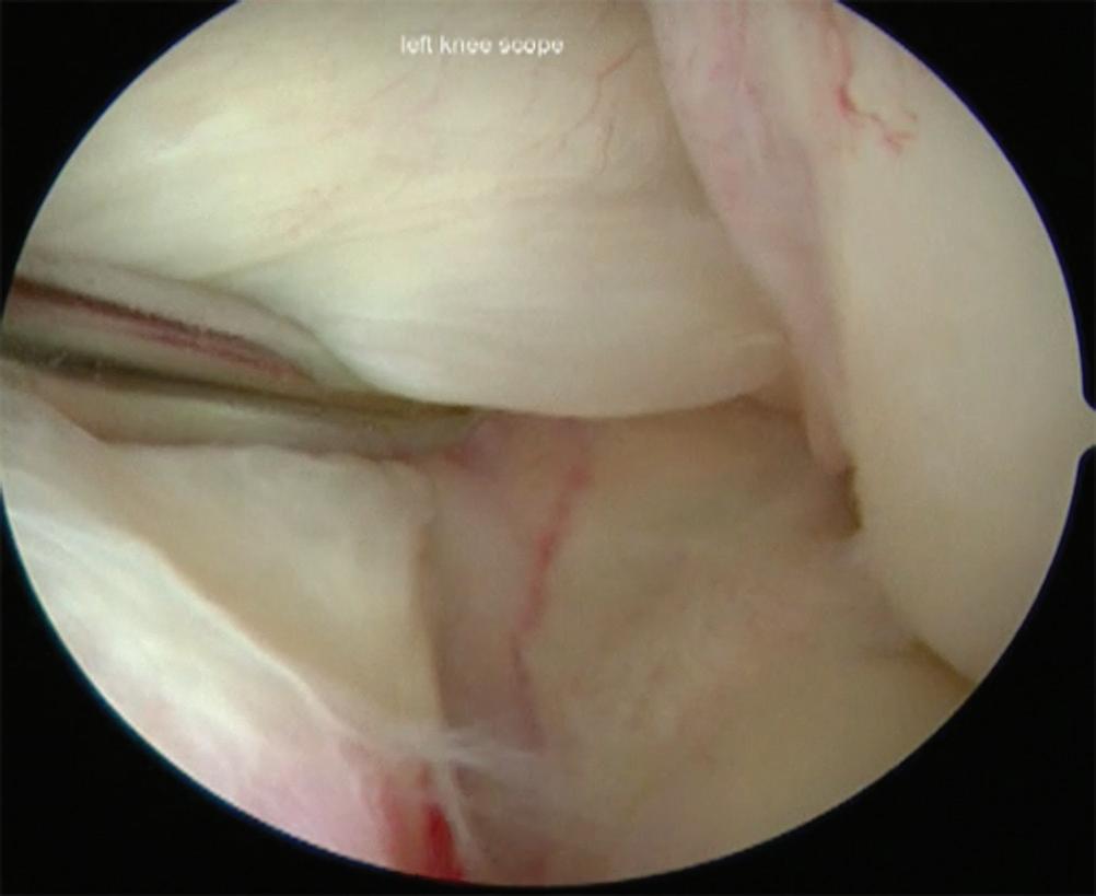 ■ The camera should be gently moved laterally, with the eyes oriented laterally to view the midbody of the meniscus followed by the anterior horn.