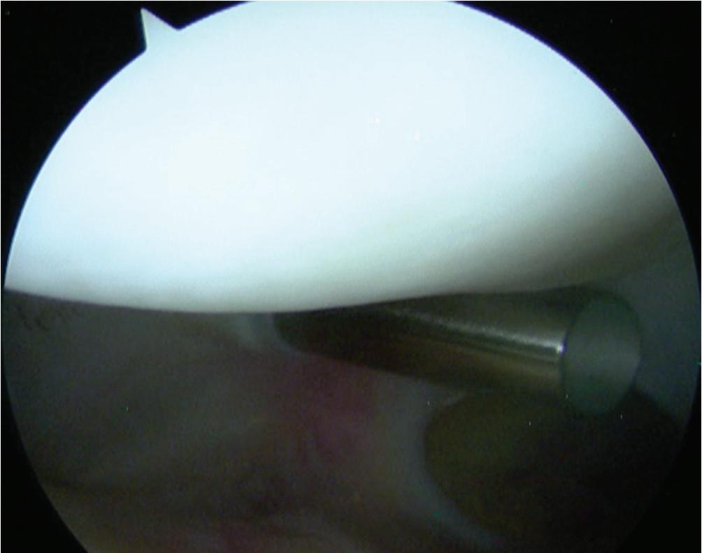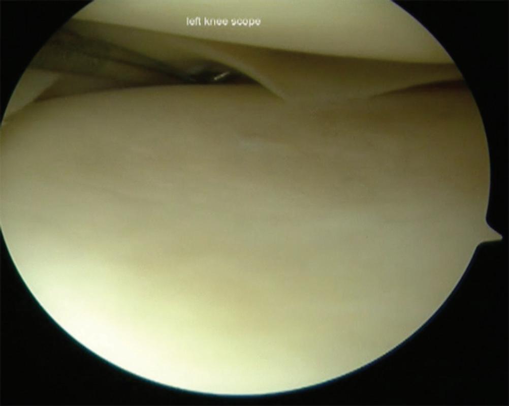 • Placement of the scope on the anterior horn of the meniscus medially may provide a second way to visualize the posterior horn of the meniscus