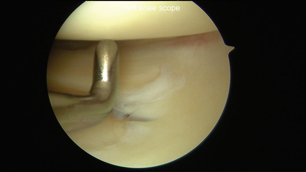 Figure 1-11 Arthroscopic photograph of the left knee shows assessment of the lateral meniscus.