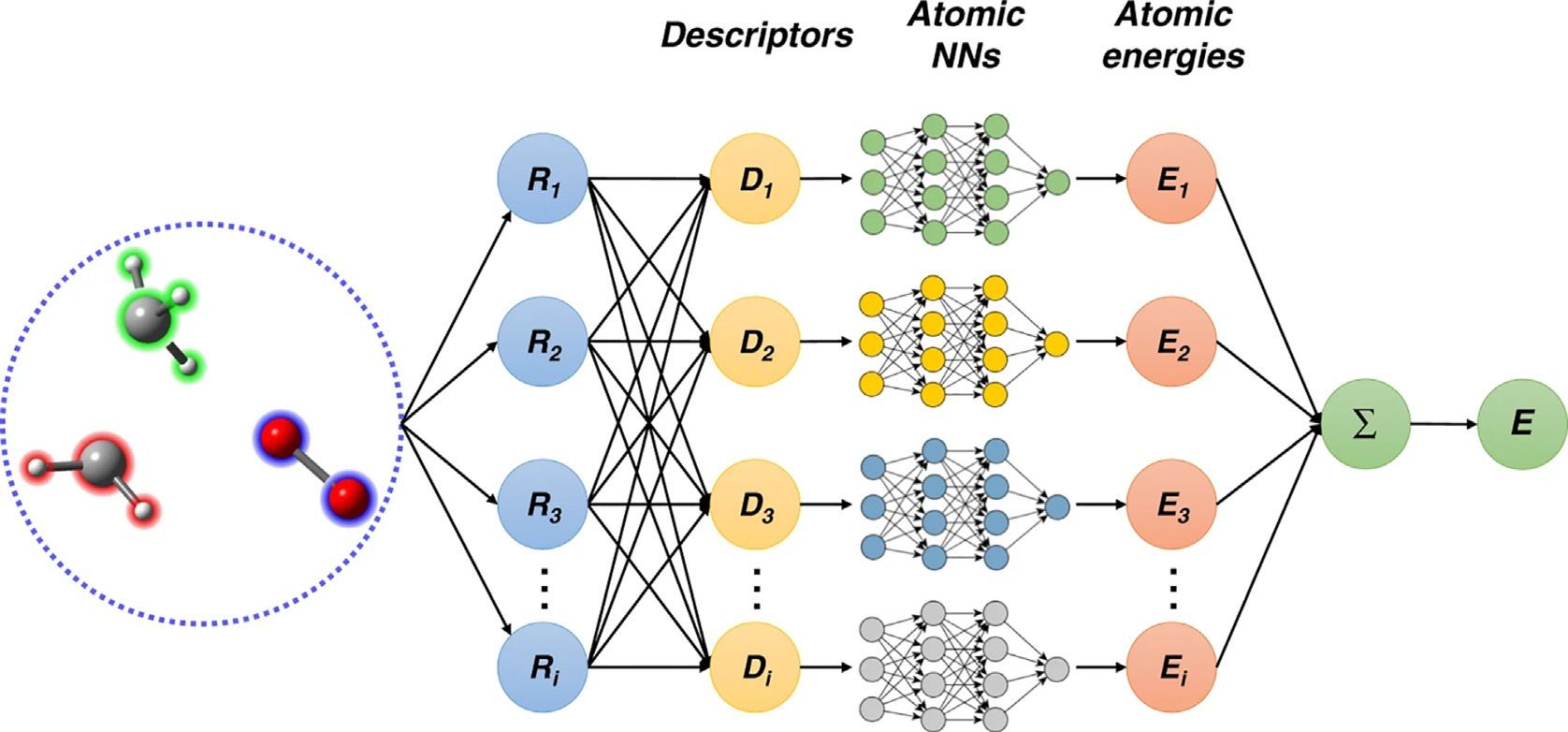FIG.2 TheneuralnetworkmodelthatgeneratesthepotentialenergysurfaceforMDsimulation. Thisfigureistaken fromJ.Zeng,L.Cao,M.Xu,T.Zhu,J.Z.H.Zhang,Complexreactionprocessesincombustionunraveledbyneuralnetworkbasedmoleculardynamicssimulation,Nat.Commun.11(2020)5713.