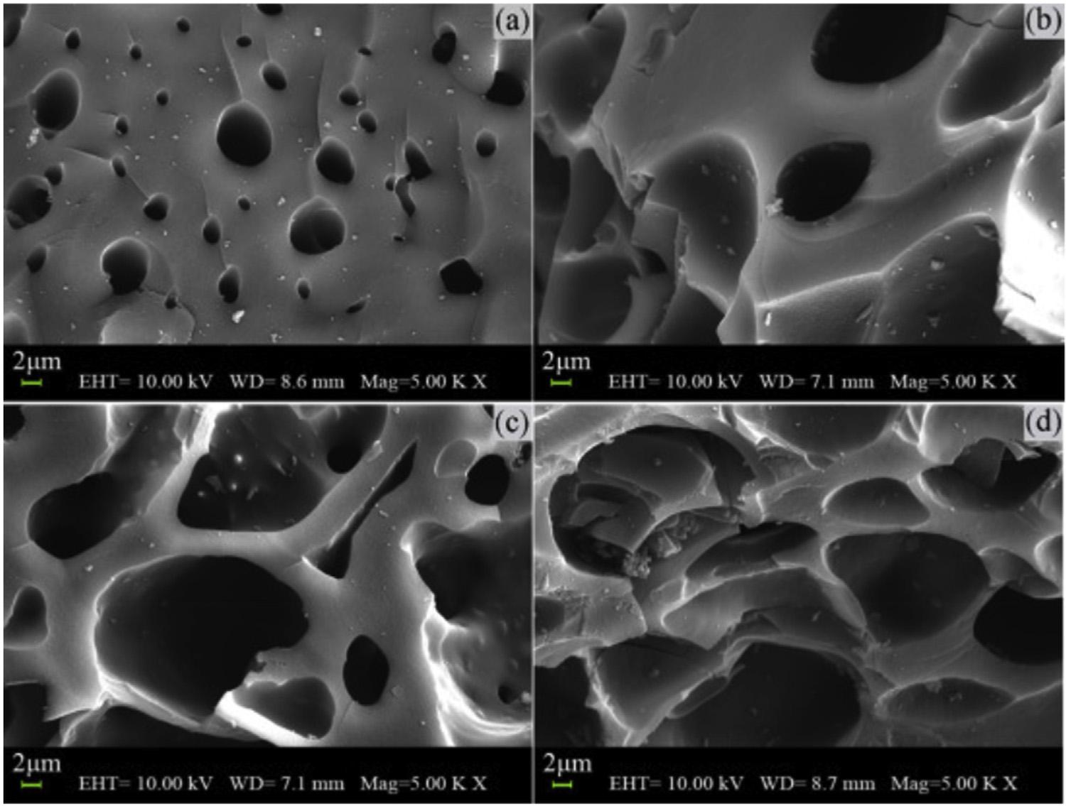 FIGURE6.2 SEMimagesof(A)AC-S-1-CO2,(B)AC-S-2-CO2,(C)AC-S-3-CO2,and(D)AC-S-4-CO2 (theas-obtainedAC wasnamedAC-S-X-CO2,whereX(¼1,2,3,or4)referredtotheH3PO4/precursorimpregnationratiousedtopreparethe sample)[53].