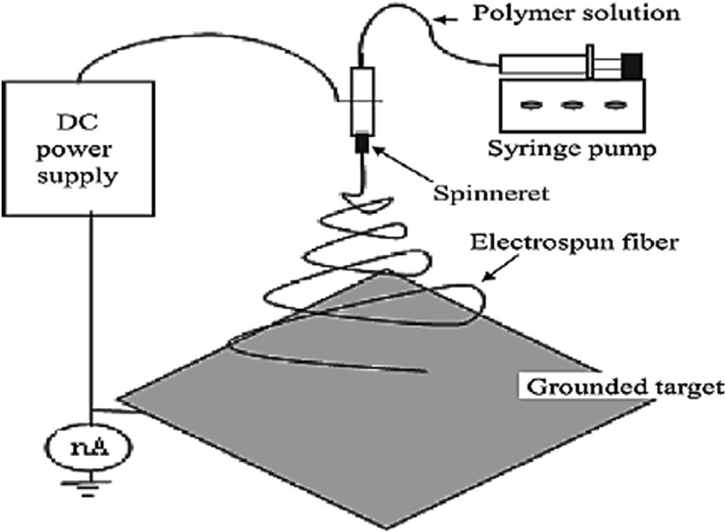 Electrospinningisaneffectivetechniqueto producepolymericnanofibers.Therapidlydevelopingtechniqueofelectrospinningprovidesa straightforwardandcost-effectiveapproachto produce fiberswithdiametersrangingfromsubmicronstonanometerswithdiametersofapproximately300nm.Itoffersmanyopportunitiesto tailorthe fibermorphology,chemicalcomposition, fibrousarchitecture,andfunctionality.Duringelectrospinning,apolymersolutionis stretchedunderahighelectricalvoltageinto fine filaments,whichdepositrandomlyonan electrodecollectorformingarandomlyoriented nanofiberweb.Atypicalelectrospinningsetup consistsofametallicspinneret,asyringepump, ahigh-voltagepowersupply,andagrounded collectorinahumidity-controlledchamber (Fig.6.12).Apolymersolution,polymermelt,or