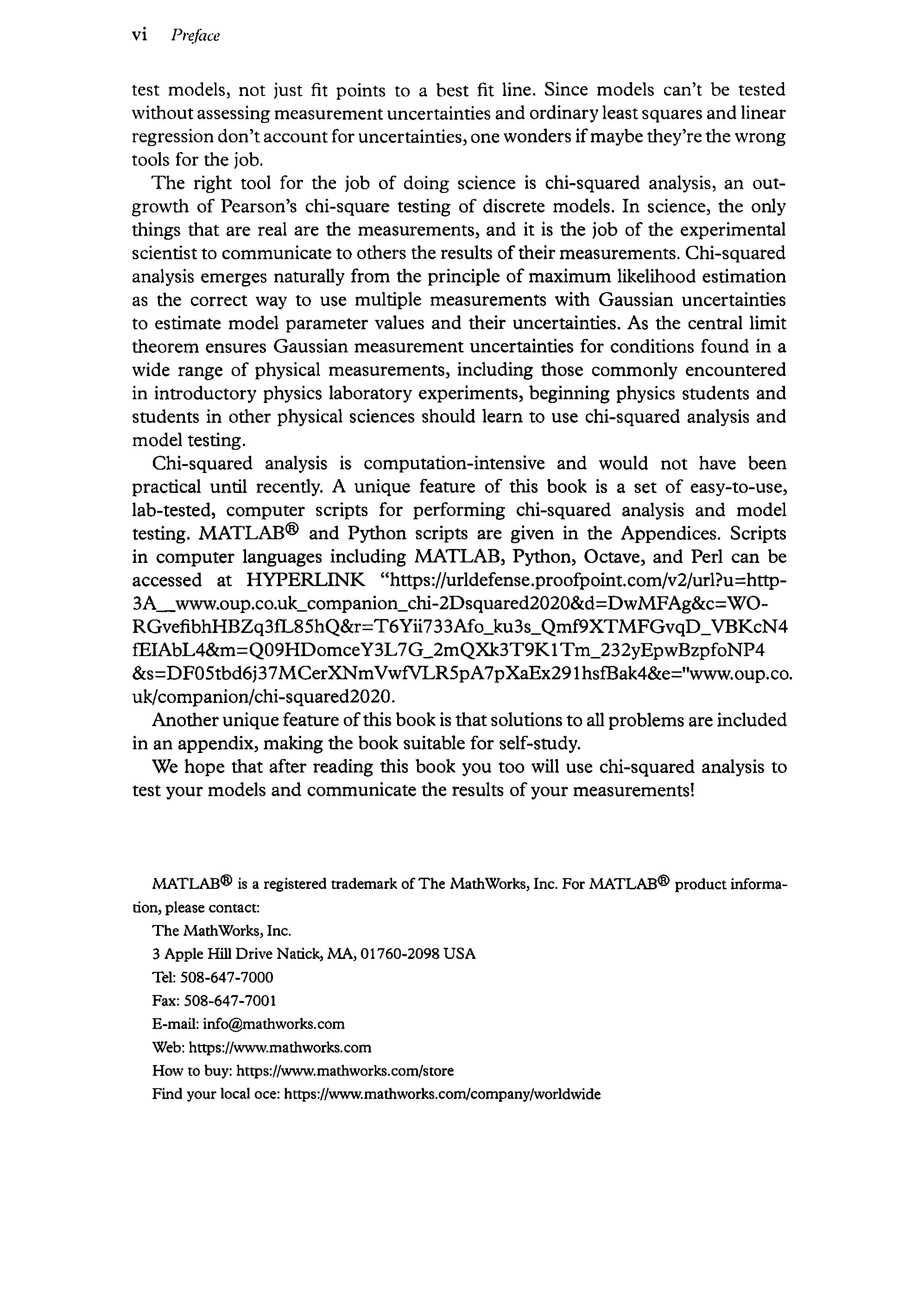 Chi-squared analysis is computation-intensive and would not have been practical until recently. A unique feature of this book is a set of easy-to-use, lab-tested, computer scripts for performing chi-squared analysis and model testing. MATLAB® and Python scripts are given in the Appendices. Scripts in computer languages including MATLAB, Python, Octave, and Perl can be accessed at HYPERLINK https://urldefense.proofpoint.com/v2/url?u=http3A__www.oup.co.uk_companion_chi-2Dsquared2020&d=DwMFAg&c=WORGvefibhHBZq3fL85hQ&r=T6Yii733Afo_ku3s_Qmf9XTMFGvqD_VBKcN4 fEIAbDL4&m=Q09HDomceY3L7G_2mQXKk3T9K1Tm_232yEpwBzpfoNP4 &s=DFO05tbd6j37MCerXNmVwfVLRSpA7pXaEx29lhsfBak4&e="www.oup.co. uk/companion/chi-squared2020.