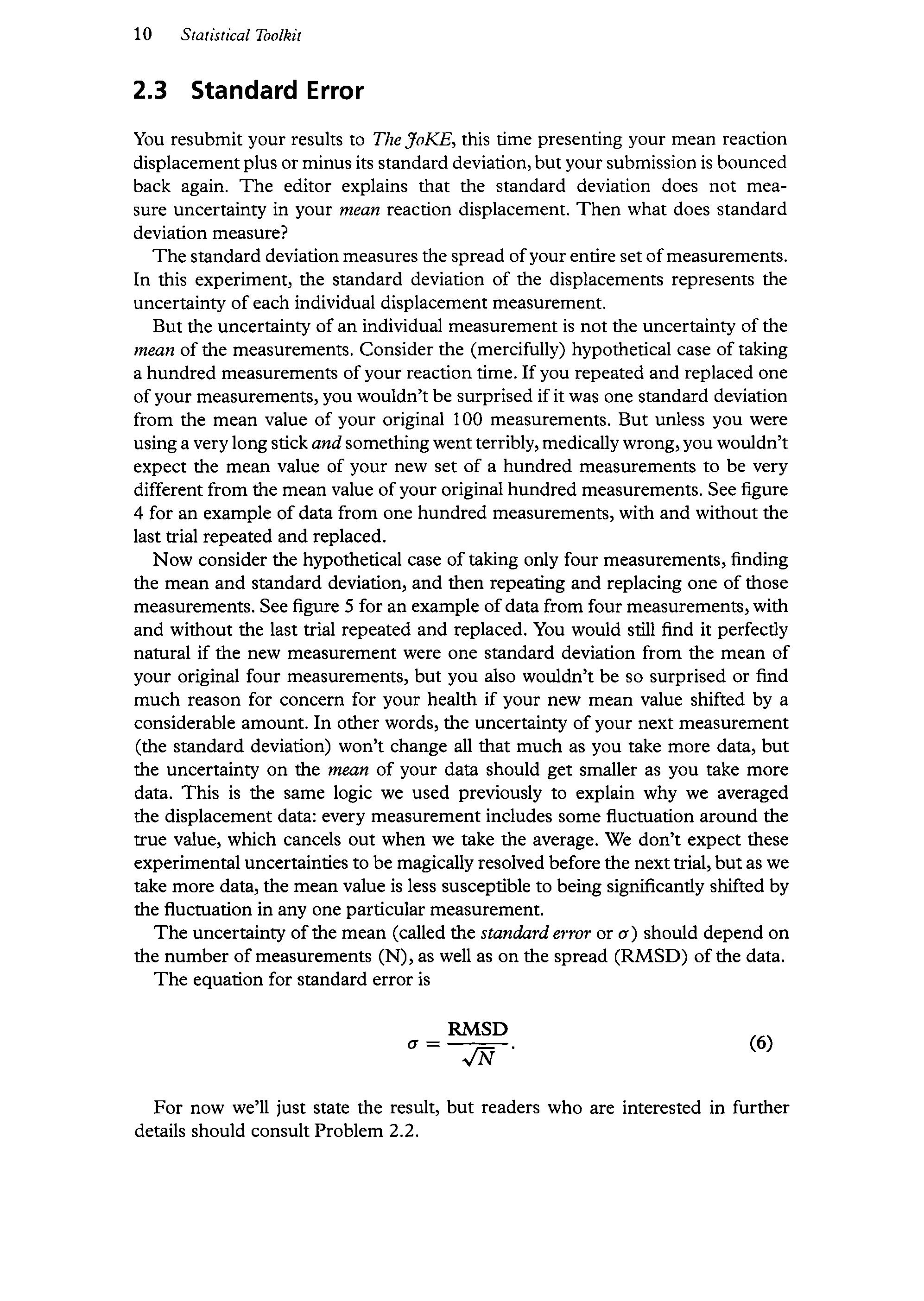 2 The standard erroris the standard deviation of the mean. Standard deviation and standard error are widely used measures ofuncertainty that are formally introducedin the Chapter2.