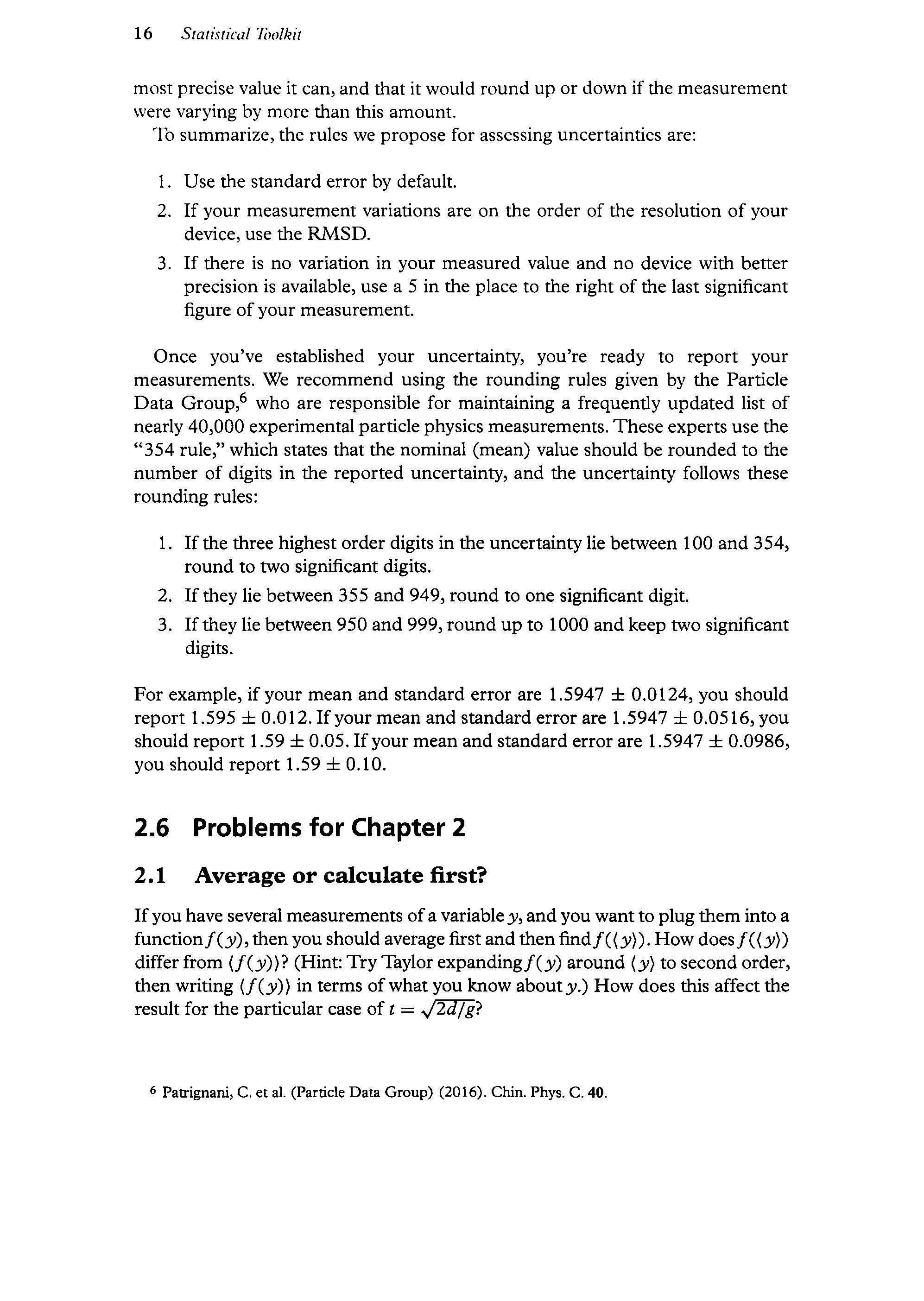 Once you ve established your uncertainty, you re ready to report your measurements. We recommend using the rounding rules given bythe Particle Data Group,® whoare responsible for maintaining a frequently updatedlist of nearly 40,000 experimental particle physics measurements. These experts use the 354 rule, which states that the nominal (mean) value should be rounded to the number of digits in the reported uncertainty, and the uncertainty follows these rounding rules: