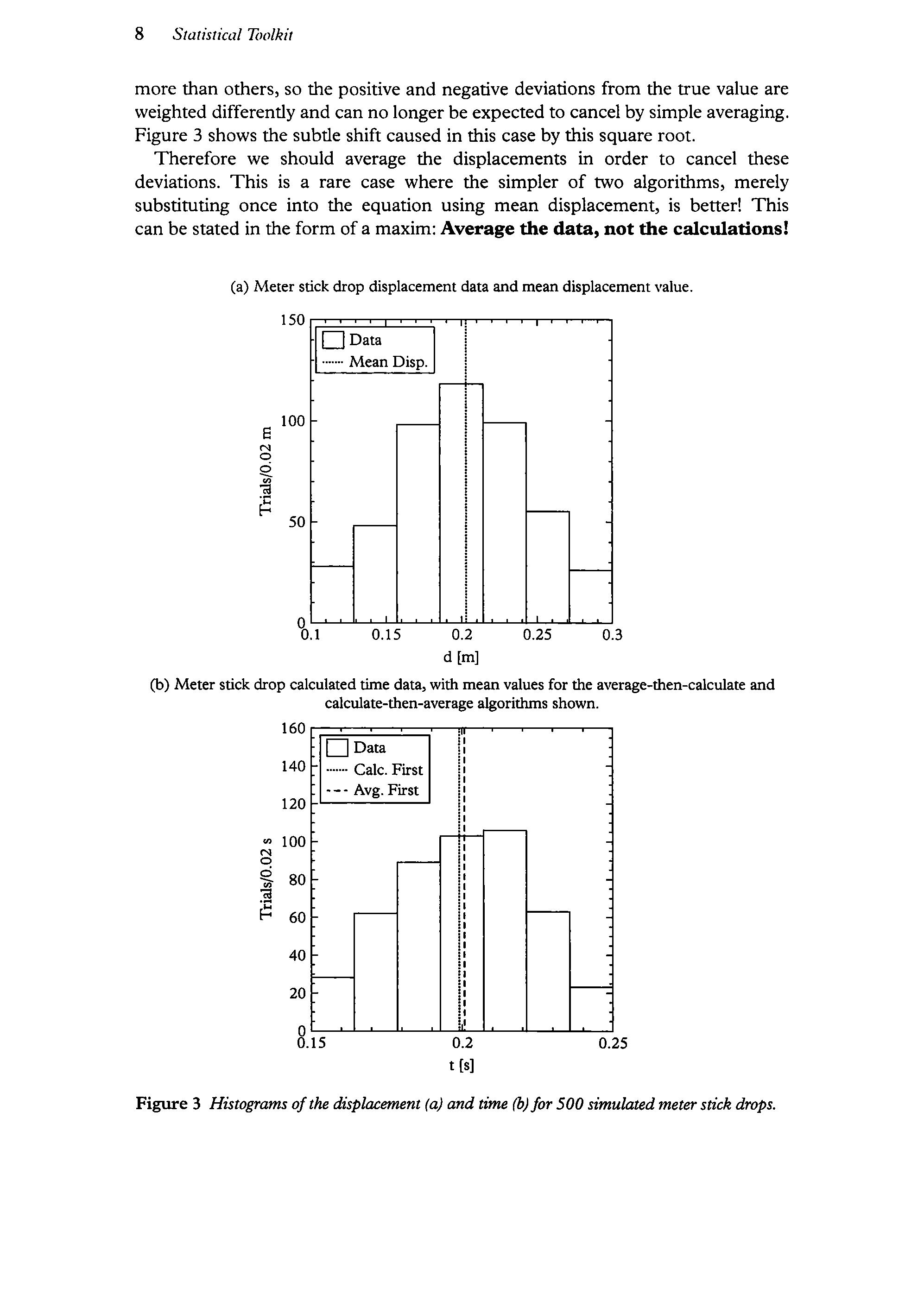 Therefore we should average the displacements in order to cancel these deviations. This is a rare case where the simpler of two algorithms, merely substituting once into the equation using mean displacement, is better! This can bestated in the form ofa maxim: Averagethe data, not the calculations!