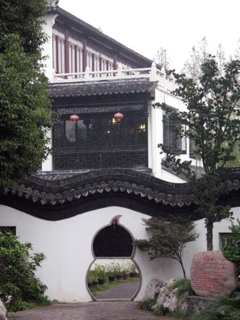 Figure 7. Gourd-shaped Gate at Suzhou Calm Garden (Ding Yuan), behind which is the Tea House. Photo by the author 2007