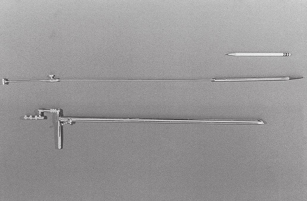 his talents in the GI tract. Under his influence, esophagoscopy was considered the exclusive province of ear, nose, and throat (ENT) departments in many community hospitals in the United States as late as the 1950s. The design of the esophagoscope remained a straight rigid tube, usually with a rubber finger-tipped obturator to make insertion safer. With the later addition of a 4 × power lens on the proximal end and a distal incandescent bulb, various models were popular until the introduction of fiberoptics in 1961. The Eder-Hufford rigid esophagoscope (Fig. 1.4), introduced in 1949, was popular and still in use in the early 1960s.