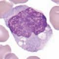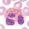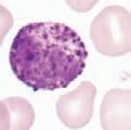 Slidesmustbeallowedtodrythoroughlybeforestaining.Thecellsarefixedtotheglass slidebythemethanolinthestain.StainingreactionsarepHdependent,andtheactual stainingofthecellularcomponentsoccurswhenabuffer(pH6.4)isaddedtothestain.Free methyleneblueisbasicandstainsacidiccellularcomponents,suchasRNA,blue.Freeeosin isacidicandstainsbasiccomponents,suchashemoglobinoreosinophilicgranules,red. NeutrophilshavecytoplasmicgranulesthathaveaneutralpHandacceptsomecharacteristicsfrombothstains.Detailsforspecificmethodsofstainingperipheralbloodandbone marrowfilms,includingautomatedmethods,maybefoundinastandardtextbookof hematology.