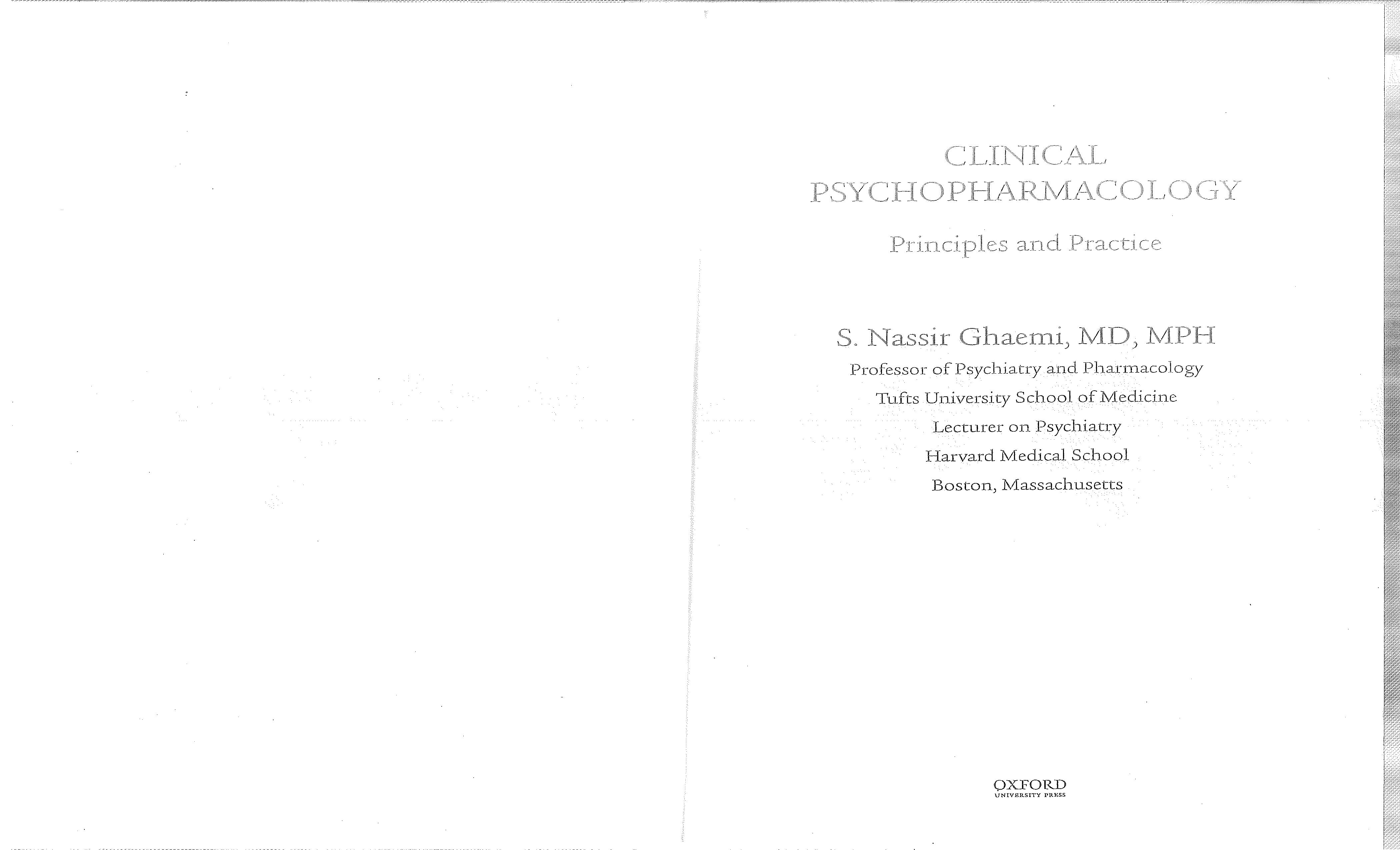 T i t l e : C l i n i c a l p s y c h o p h a r r n a c o l o g y : p r i n c i p l e s a n d p r a c t i c e / b y S . N a s s i r G h a e m i .