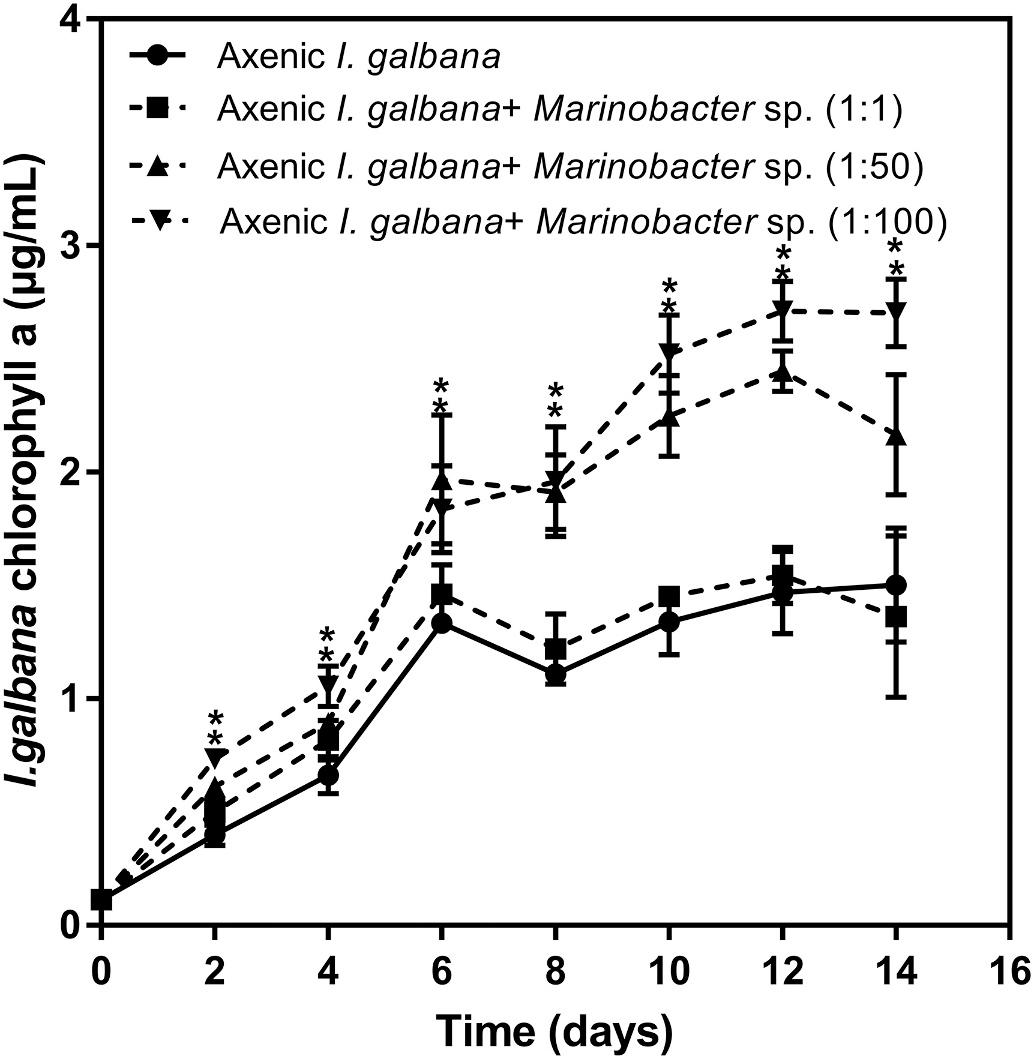 3.1. The effects of Marinobacter sp. on the growth of I. galbana