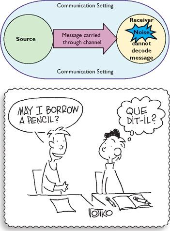Now suppose that the person sitting next to you is from France and speaks no English. The symbol that he uses for pencil is crayon. Unless both of you communicate in French, he will be unable to decode your message, so no successful communication takes place. (See Figure 1.3.)