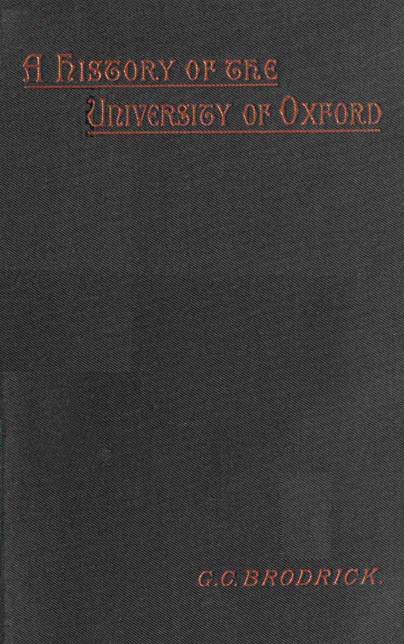 A HISTORY OF THE UNIVERSITY OF OXFORD. By the Hon. G. C. BRODRICK, D.C.L.