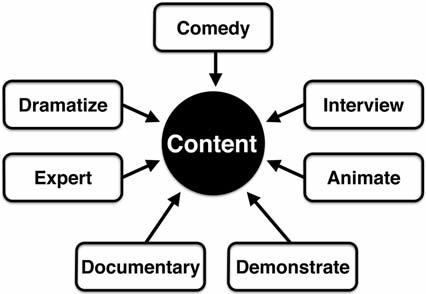There are many different ways to present your content. We have listed some of the most popular production formats here. A combination of these approaches is often used to best communication to the audience.