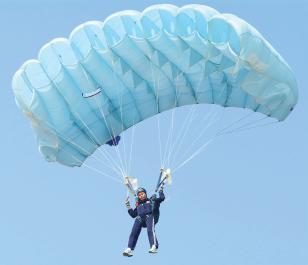 ● A parachute reduces the terminal velocity so a skydiver can land safely.