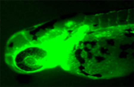 FIGURE1.1 Zebrafishfli1[(Tg(fli1:eGFP)y1]transgeniclarva.Thistransgeniclineinvolvesa transgenicinsertionofenhancedgreenfluorescentprotein(eGFP)inthevasculatureundercontrol ofthefli1promoter.Thistransgeniclineisusedtoeasilyvisualizevasculardefectsinzebrafish followingchemicalexposures.