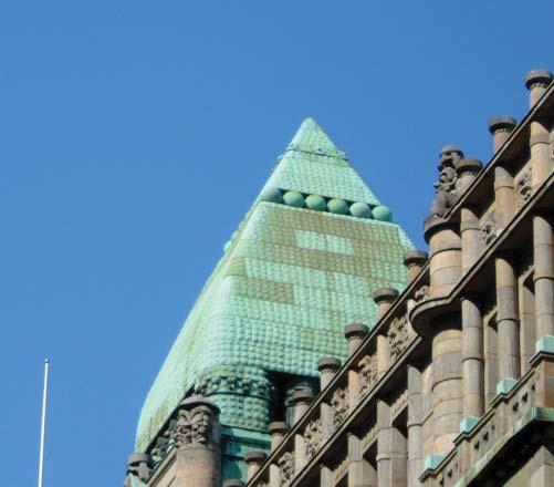 Powerandforceareneededtoshapetheothermetalsusedinartandarchitecture.Copper,on theotherhand,shapesandmovesundertheblowsofhandheldchasingtools.Itcanbeeasilyfolded, curved,stretched,andembossed.Onegetsclosetothemetalwhenworkingwithcopper.
