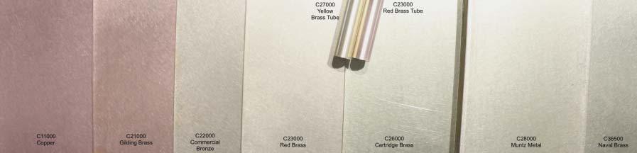 Forexample,aszincisaddedtomoltencopperitdissolvesandintegratesintoasinglecrystal structure,orphase,alongwiththecopperatoms.Thealloybecomesprogressivelymoreyellowin color.Atthepointatwhich35%zincisalloyedwithcopper,themetalreachesasaturationpointand thecolorwillbeyellow.ThisisthealloyC27000,alsoknownasyellowbrass.Aszincisaddedbeyond this35%level,aphasechangeoccursinthecrystalmakeup,theyellowcolorlosesintensity,andthe colorgoesbacktoabronzetone.Thecoppercrystallatticecannolongertakethezincatomsinand twophasesdevelop:analphaphase,withaface-centeredcubicstructure,andabetaphase,witha body-centeredstructure.Forexample,alloyC28000,commonlyknownasMuntzmetal,contains 40%zincandislessyellow.BothalphaandbetagrainsareapparentinalloyC28000(seeFigure1.6 forcomparisonsofthenaturalcolorsofcopperalloys).