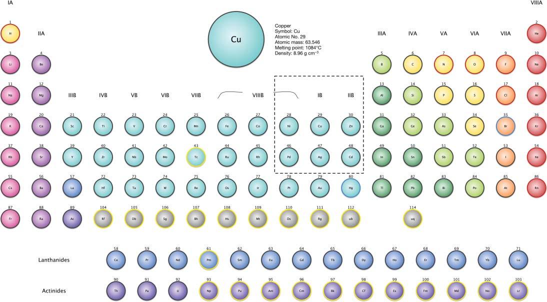 Theatomicmakeupofcopperisresponsibleformanyoftheuniqueattributesthismetaloffers (Figure1.3).Theatomicnumberof29meansthatcopperhas29protonsinthenucleuswith29electronsmakingupitsoutershells.Itistheloneelectroninitsfourthorbitalthatgivescopperoneof