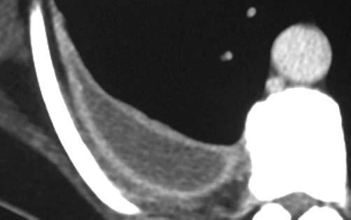 The split pleura sign is seen in the majority of exudative effusions, although it is not specific. Similar findings can be seen in malignant effusion, mesothelioma, fibrothorax, and after talc pleurodesis.