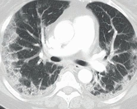 • The differential diagnosis of basal-predominant fibrotic change includes: