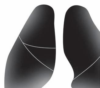 • The major (oblique) fissures are seen only on the lateral radiograph as oblique lines.