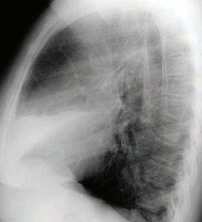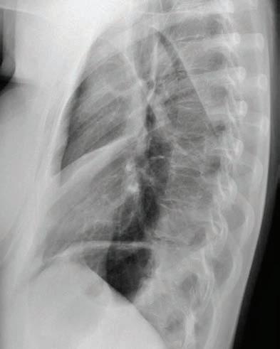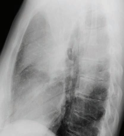 • An empyema conforms to the shape of the pleural space, causing a longer air–fluid level on the lateral radiograph. This is in contrast to an abscess, discussed above, which typically is spherical and has the same dimensions on the frontal and lateral radiographs.