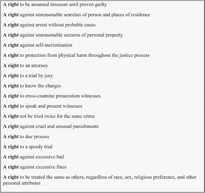 • Identify the values underlying the crime control model of justice and the due process model of justice.