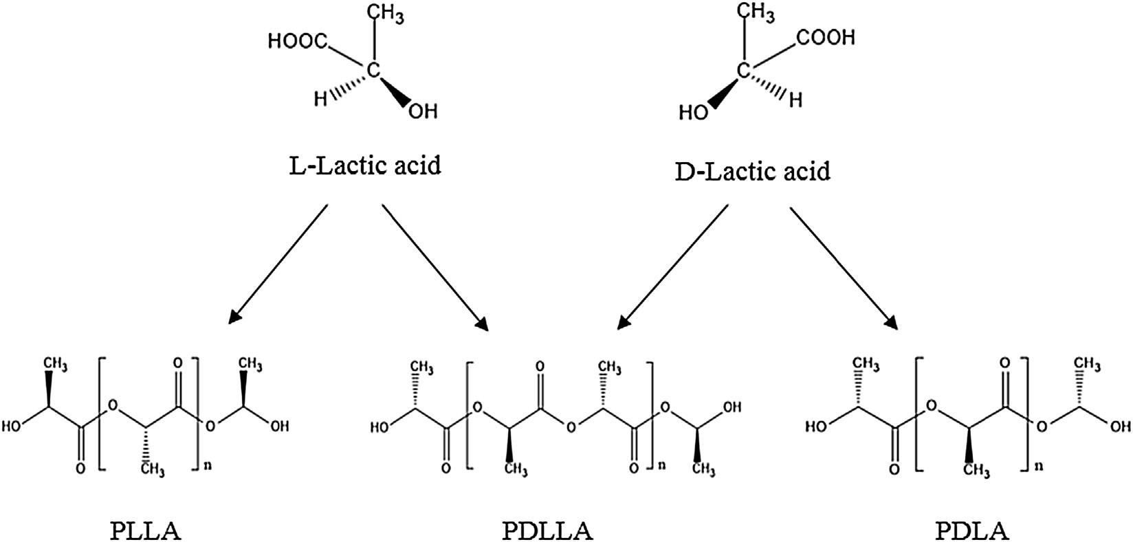 PDLA,poly(D-lacticacid); PDLLA, poly(D-, L-lacticacid); PLLA,poly(L-lactic acid).