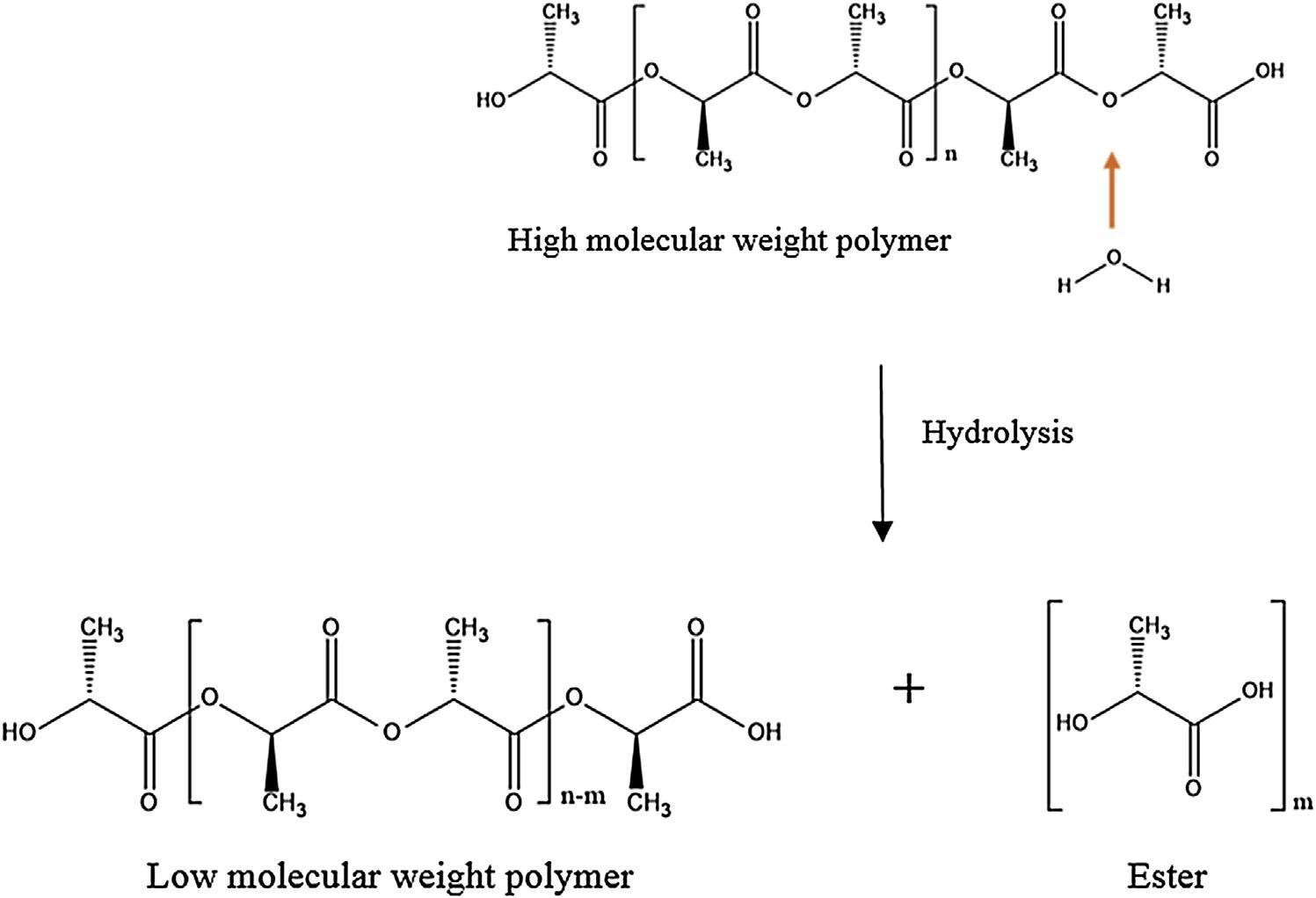 PLAiswellknownforitsgoodbiodegradableproperty,whichisenvironmentally friendly.TheEuropeanSocietyforbiomaterialsdefinedbiodegradationastheprocessin whichbiologicalagents(microbesandenzymes)playadominantroleindegradation [65].However,PLAwasteisdegradedbyhydrolyticcleavageofthepolymerbackbone (Fig.1.4),withonlylittleorevennoassistancefromenzymes.Therefore,thedegradation