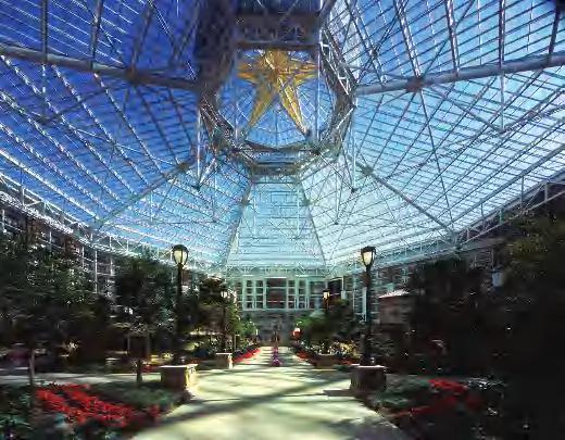 In the late 1960s, Hyatt Regency Atlanta expanded on such historic models as San Francisco’s Palace Hotel and Denver’s Brown Palace and set a new pace with its towering atrium offering a bold new dramatic form for downtown hotel lobbies. With or without atriums the trend in the 1970s and early 1980s was for large impressive lobbies. That trend has taken on new dimensions with brands such as Gaylord Hotels, where huge atriums cover acres of landscaped gardens and terraces and enclose a wonderland of restaurants, lounges, shopping streets, and performance venues. In reaction to the expense and perceived lack of warmth, many developers returned in the twenty-first century to more intimate interior spaces