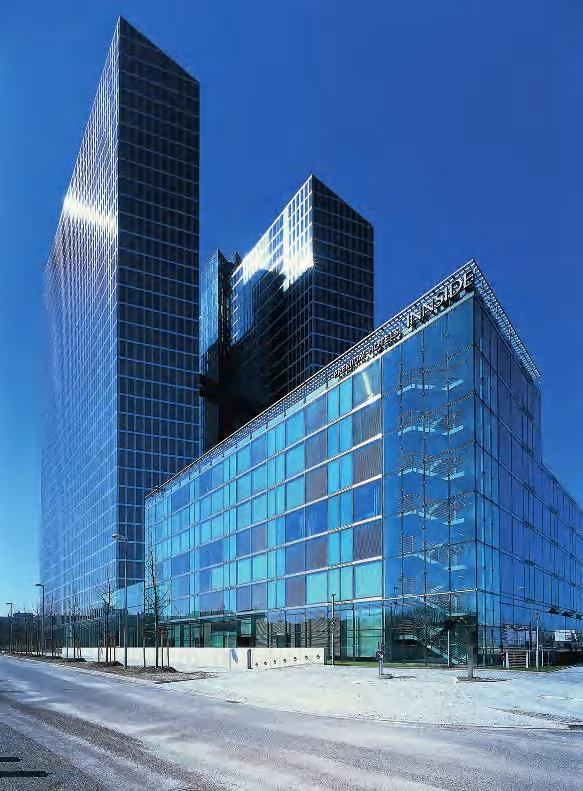 As one part of a four-piece architectural ensemble which includes two office towers and a low-rise office building designed by Helmut Jahn in Munich’s burgeoning urban redevelopment project, Parkstadt Schwabing, the Innside Premium Hotel caters to the design-conscious business traveler with 160 guestrooms and suites, a restaurant, fitness club, and conference rooms.