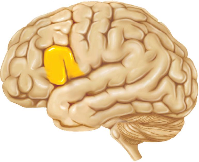 and controls, the portion of the primary motor cortex that controls the muscles of the lips, tongue, and throat, which we use to speak.