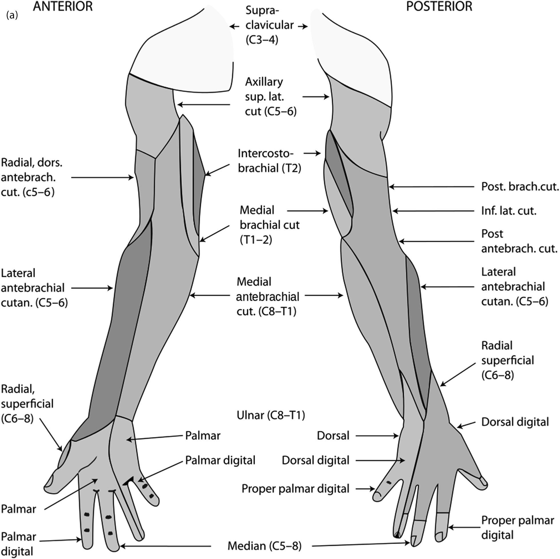 Figure 1.7 Distribution of the major cutaneous nerve branches of the upper and lower extremities