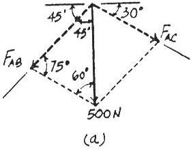 The vertical force acts downward at on the two-membered frame Determine the magnitudes of the two components of directed along the axes of and Set 500 N
