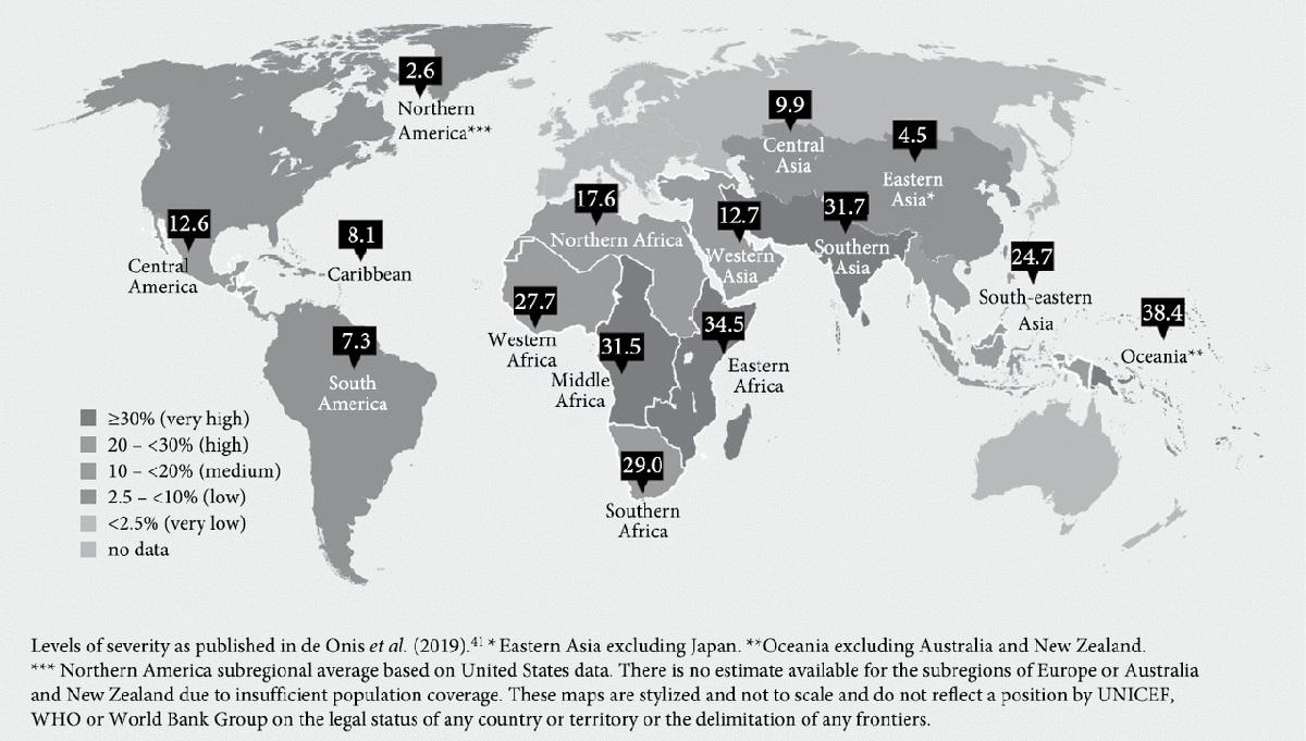 Fig. 1.5 Percentage of stunted children under five years, by UN sub-regions, 2019.