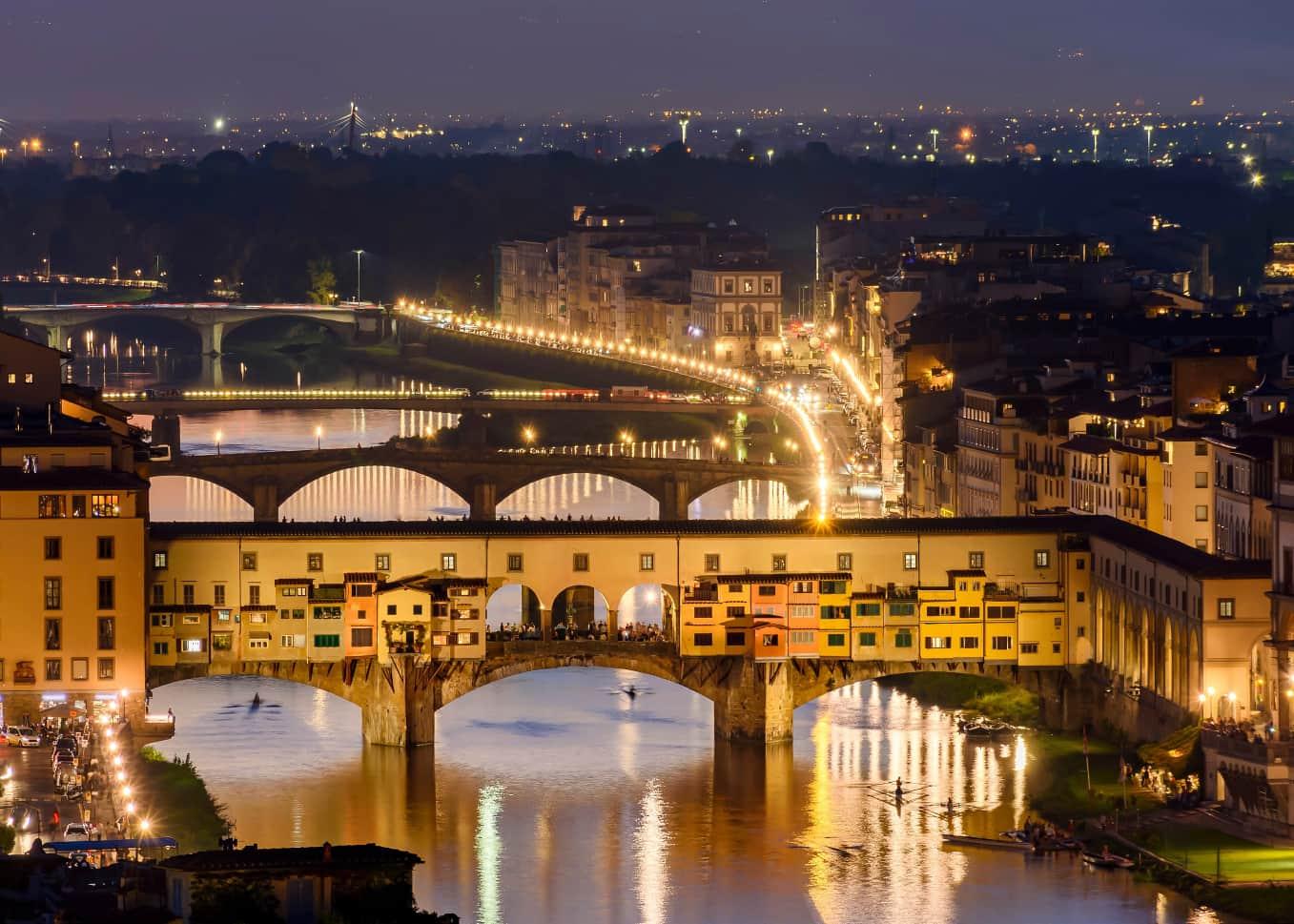 The Arno River snakes its way through the city of Florence, Italy, a center for the explosion of Renaissance science and art.