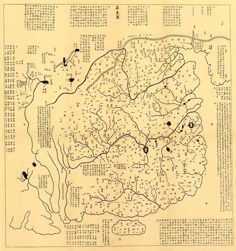 Some of the earliest maps were also engraved in stone; of these, “Yu ji tu,” or the “Map of the Tracks of Yu” is the oldest known and is exceptionally preserved. The map depicts the waterways in China, with nearly 80 rivers named.